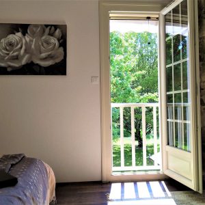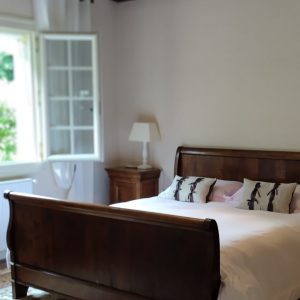 La chambre dispose d’une literie King size (160×200) à la fermeté idéale, habillée de draps en percale 120 g, pour une nuit douce et réparatrice.