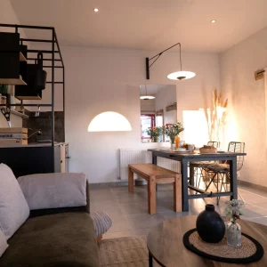 Pensé comme un véritable lieu de vie, ce gîte de 90 m² aux lignes industrielles peut accueillir jusqu’à 6 personnes. Il séduit par ses volumes lumineux et son atmosphère chaleureuse, propices à la détente et aux moments de convivialité.