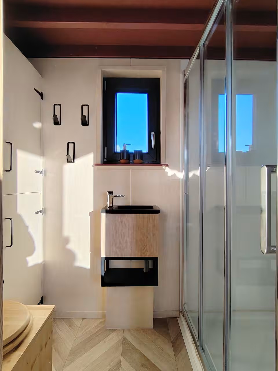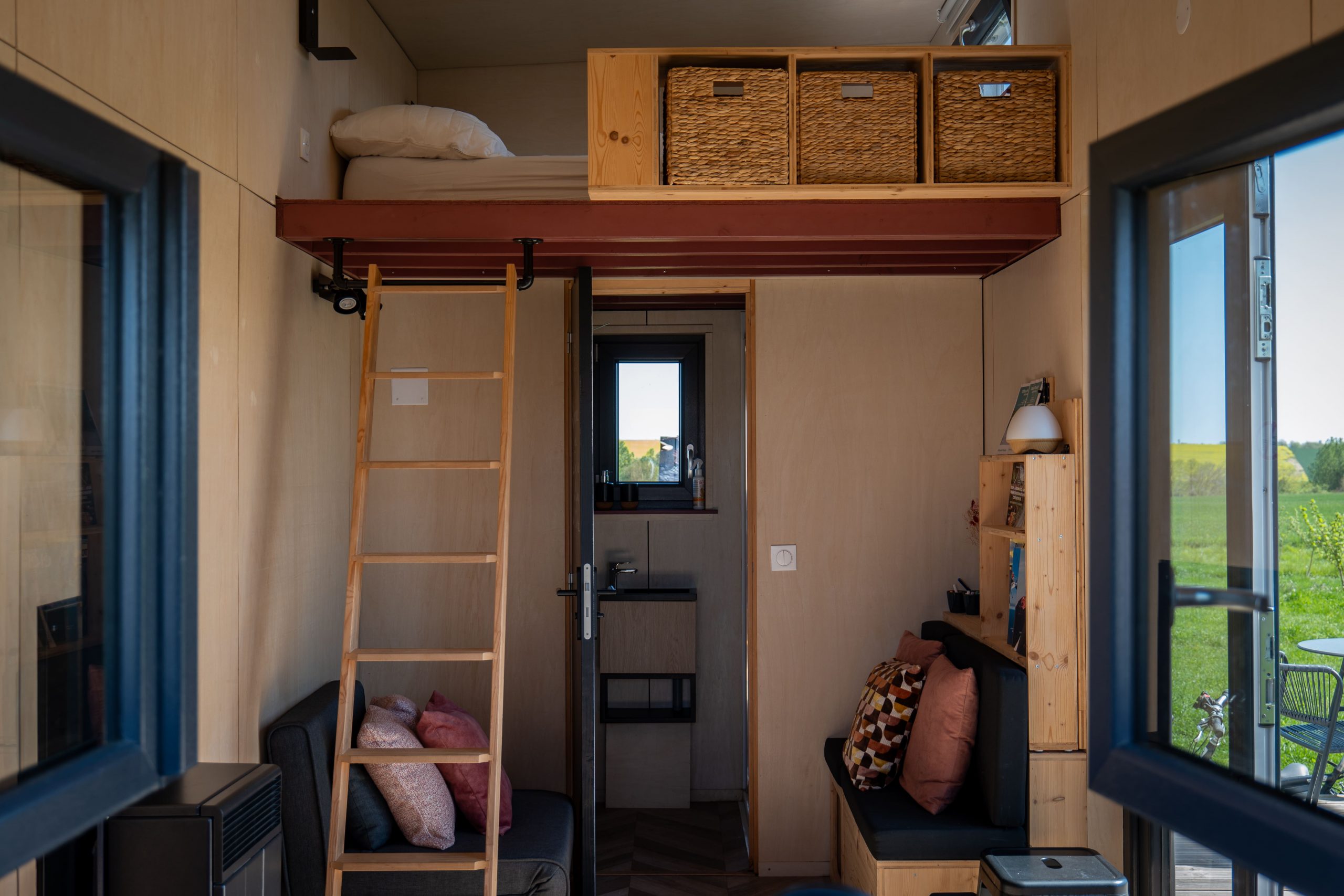 Conçue dans une démarche éco-responsable, cette tiny house allie confort moderne et sobriété. Elle dispose d’un espace de vie optimisé avec un coin cuisine entièrement équipé, un espace nuit cosy, une salle d’eau fonctionnelle ainsi qu’un espace de travail idéal pour le télétravail, avec connexion et vue apaisante sur la nature.