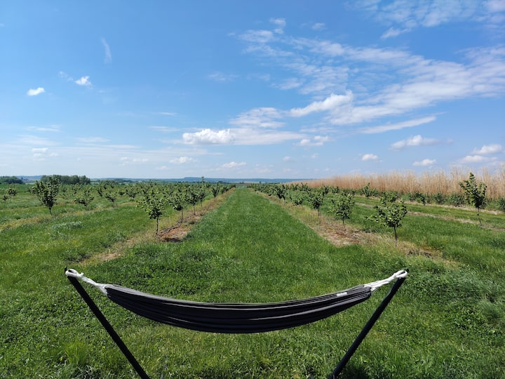 Échappez au quotidien le temps d’une parenthèse en pleine nature ou profitez d’un cadre idéal pour télétravailler autrement. La Tiny House de l’Ouchette, nichée au cœur d’un verger de noisetiers, vous plonge dans un décor apaisant, entre ciel ouvert, champs à perte de vue et douceur des chants d’oiseaux.